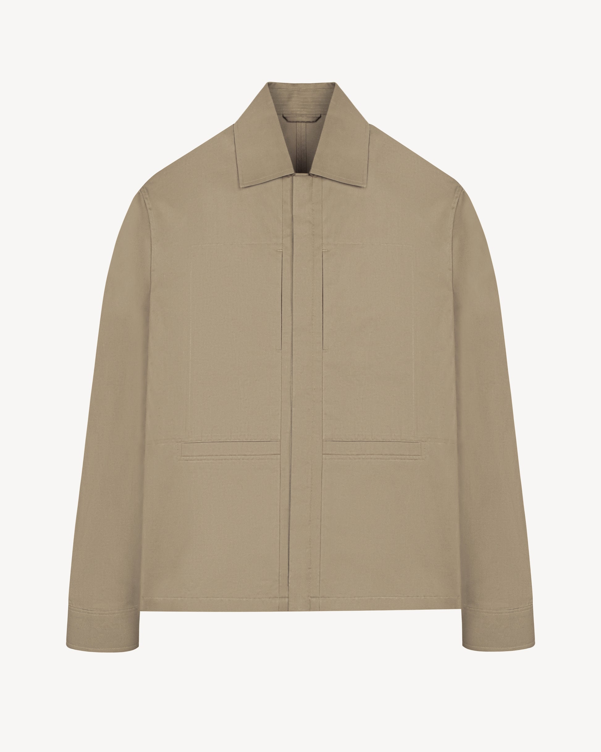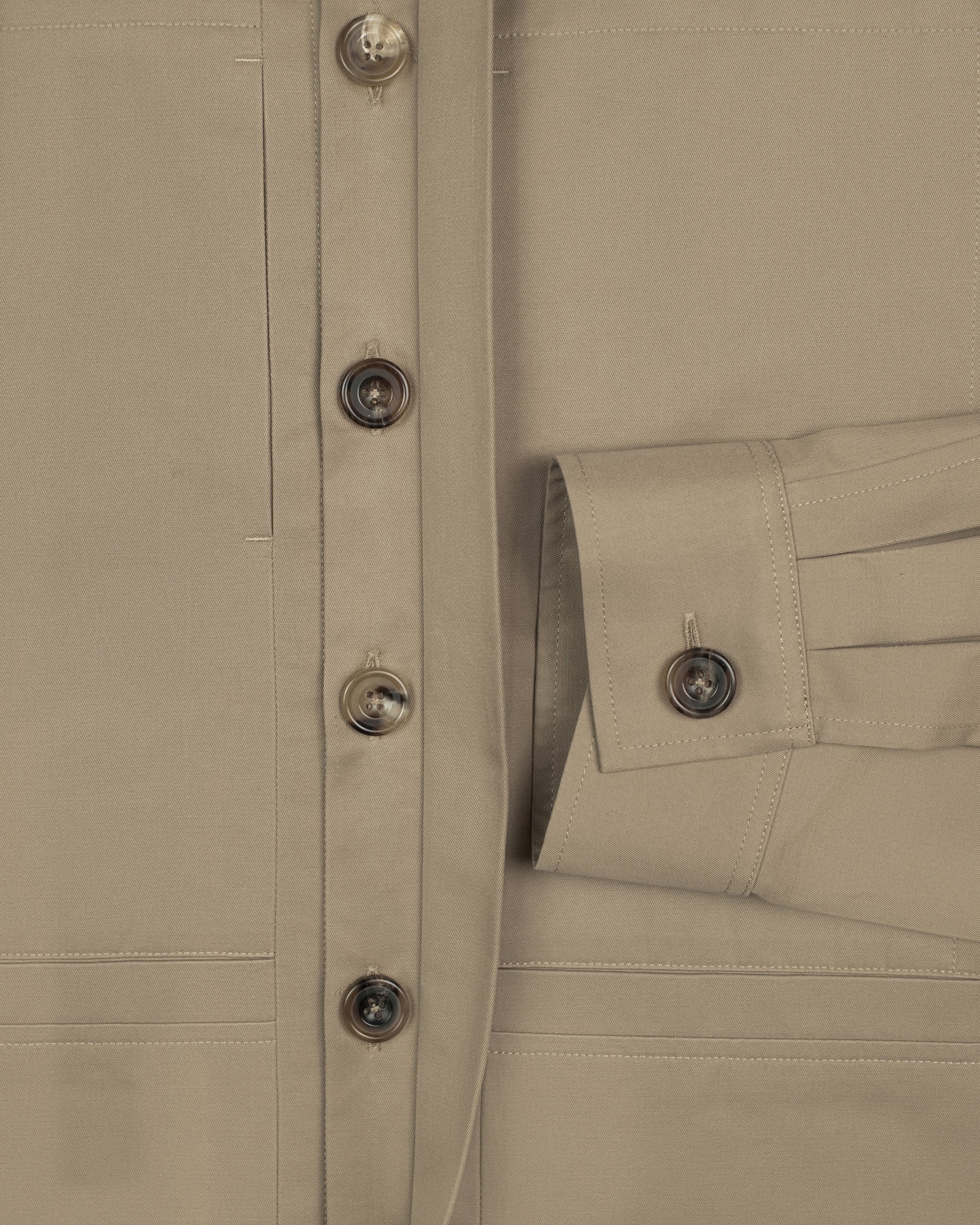 Crafted from 100% Supima cotton twill, the GARVA Overshirt offers a structured yet breathable feel with a refined texture. At 206 gsm, the fabric provides a balance of durability and comfort, making it ideal for layering. Piece-dyed in Beige, the fabric has a clean, even tone with subtle depth. Designed with a spread collar and precise tailoring, the overshirt blends function with understated elegance.